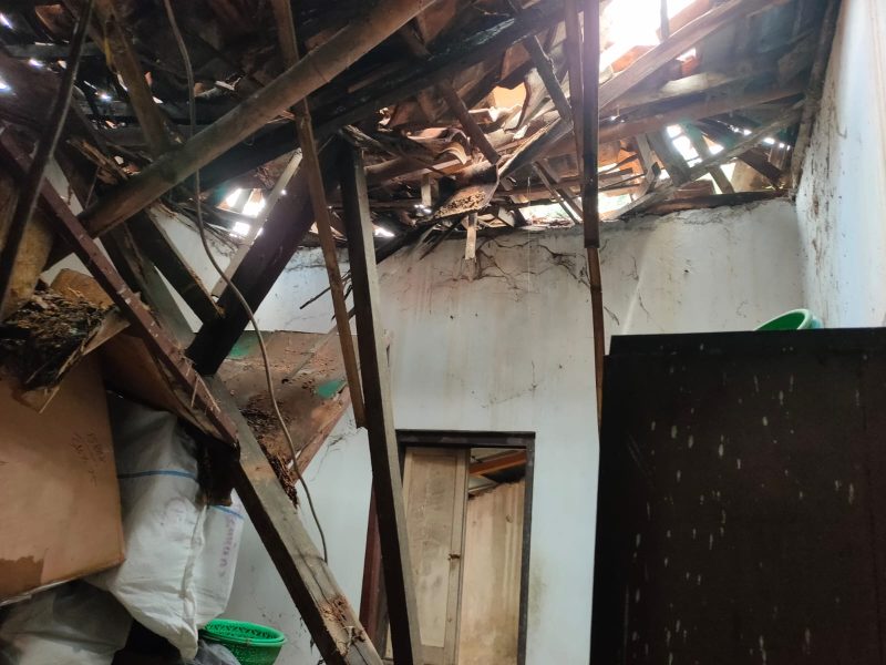 Ya…mas benar ada rumah tua tidak layak ditempati oleh dua orang perempuan yang tidak mampu yang sudah lama ditinggal orang tuanya. Kami liat kayu atap dan kuda-kudanya sudah rapuh sehingga tidak kuat nahan beban diatas dan roboh,”ucap Cak Jum, Sabtu (22/11/25).