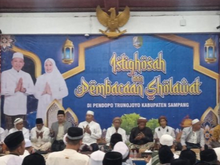 Liputanmadura.com (Sampang) Jawa Timur – Bupati Sampang H. Slamet Junaidi dan Pemerintah Kabupaten (Pemkab) bersama para ulamak menggelar istighotsah dan pembacaan sholawat di Pendopo Trunojoyo.”kamis 4 Desember 2025