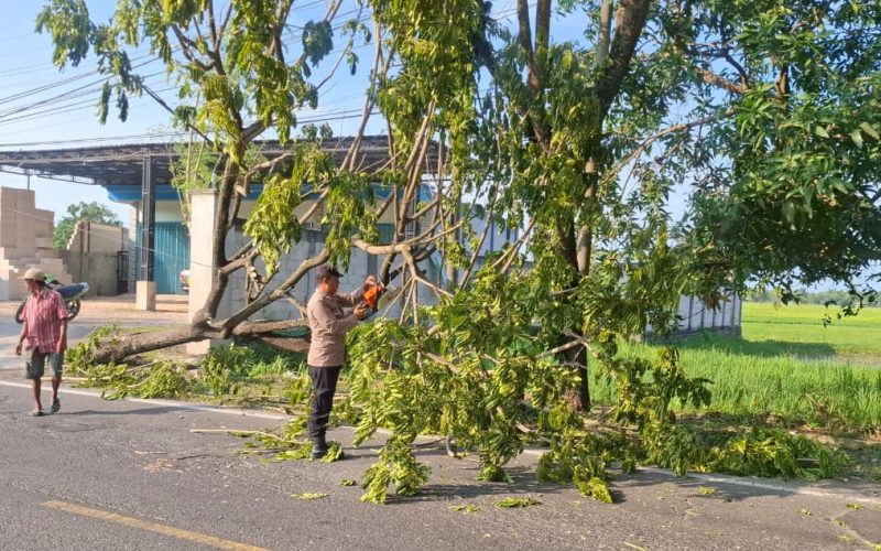 Kapolres Sampang AKBP Hartono, S.Pd., MM., melalui Pamapta Polres Sampang Ipda Nasrun Wijaya Santoso, menghimbau kepada seluruh pengguna jalan dan masyarakat untuk selalu waspada saat berkendara, terutama saat terjadi cuaca ekstrem atau angin kencang yang rawan menyebabkan pohon tumbang.