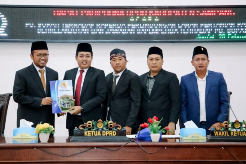 Adapun agenda rapat meliputi penyampaian pandangan umum (PU) Bupati terhadap Rancangan Peraturan Daerah (Raperda) tentang Perlindungan Lahan Pertanian Pangan Berkelanjutan (LP2B), serta jawaban Badan Pembentukan Peraturan Daerah (Bapemperda) DPRD terhadap raperda tersebut.